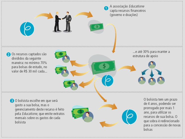 Abaixo explicamos como funciona a estrutura de captação de recursos para bolsas: